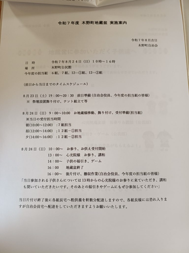 木野町自治会では子どもたちが楽しみにしている地蔵盆も開催いたします。