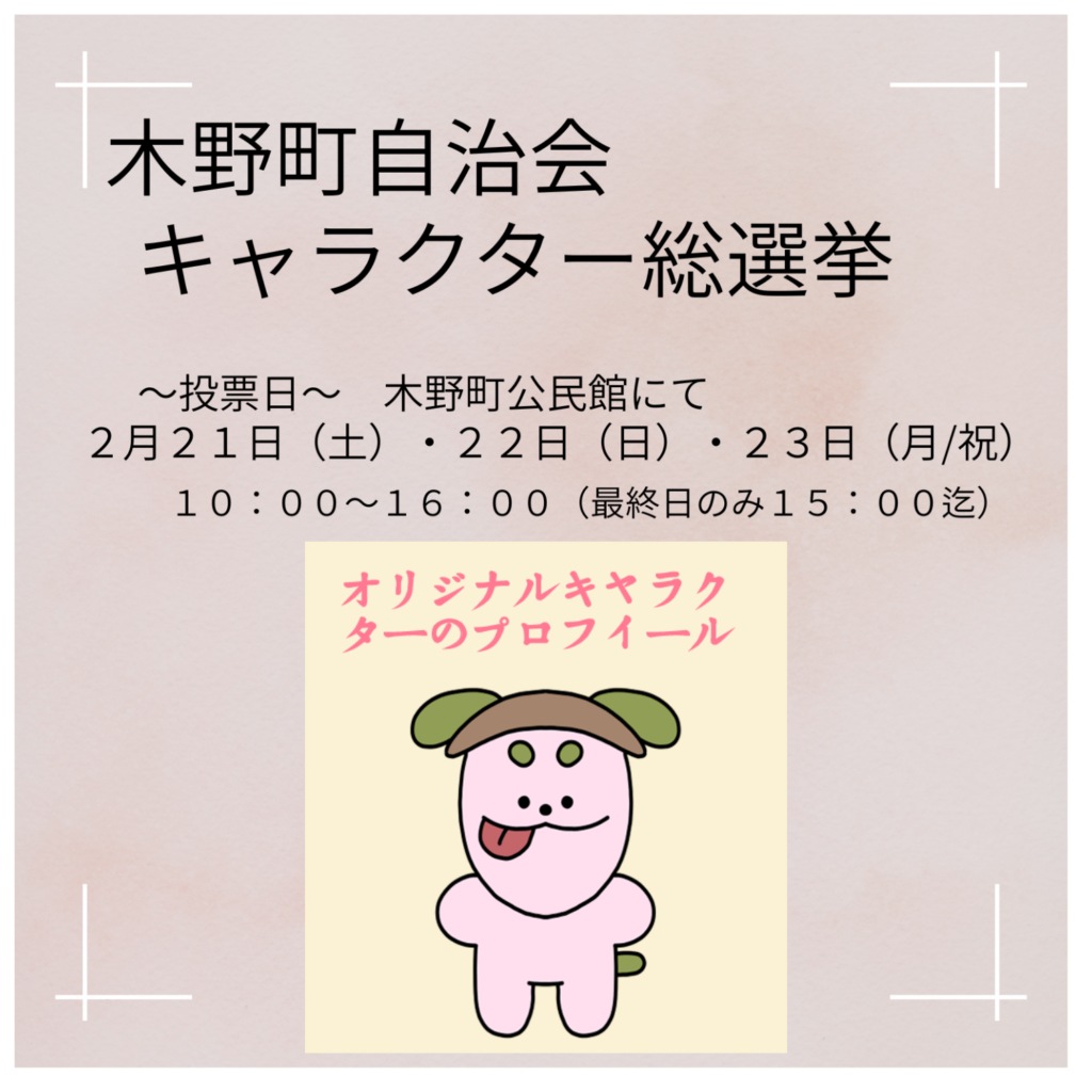 木野町自治会員以外の方でもご参加いただける木野町自治会キャラクター総選挙!