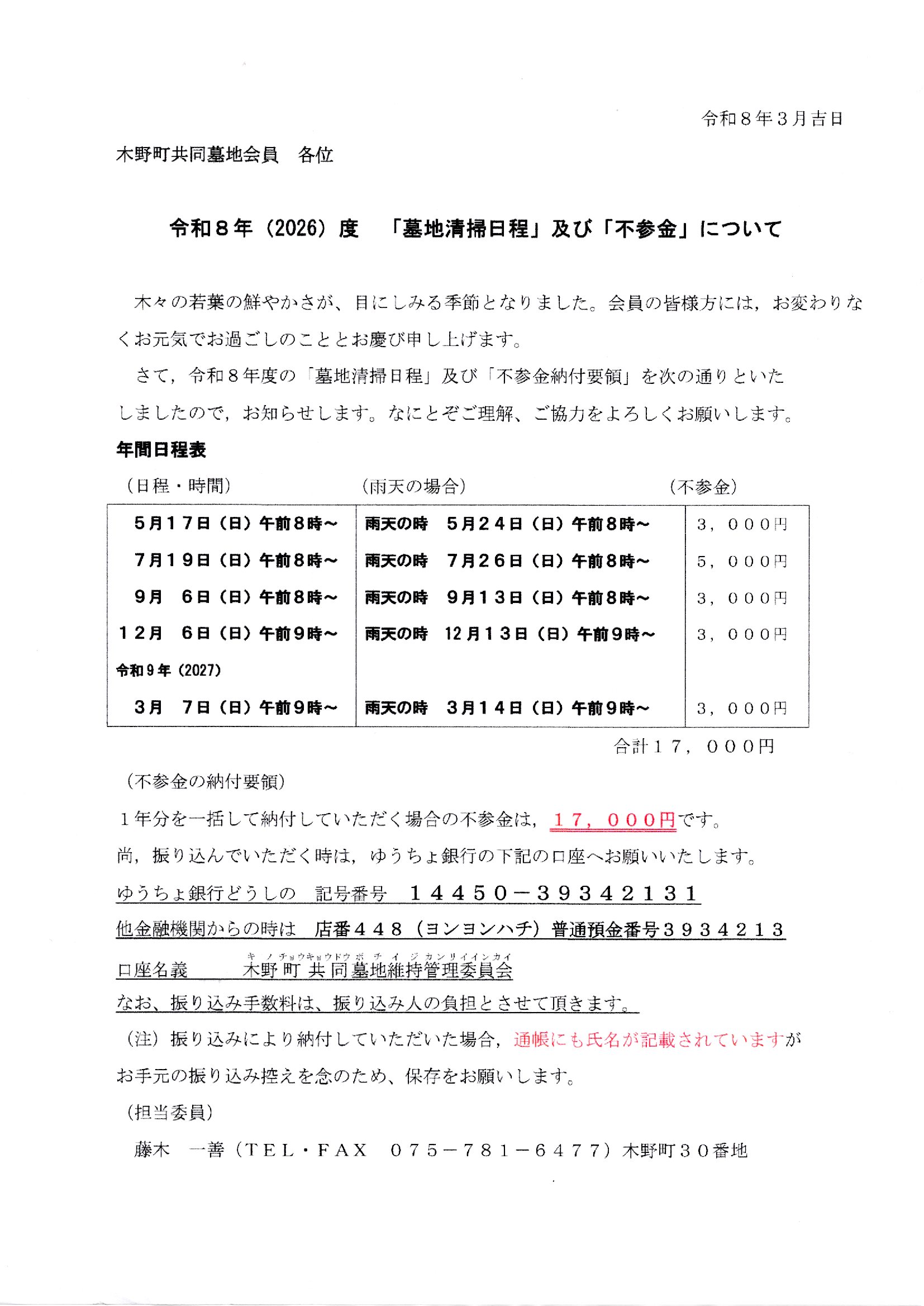 【重要】木野町共同墓地~令和8年度~ 投稿者: kinocho2026年3月24日2026年3月23日きののまち、木野町墓地委員会 木野町共同墓地会員様へ、ご連絡が届いております。各位、ご確認よろしくお願いいたします。 いいね:いいね 読み込み中…