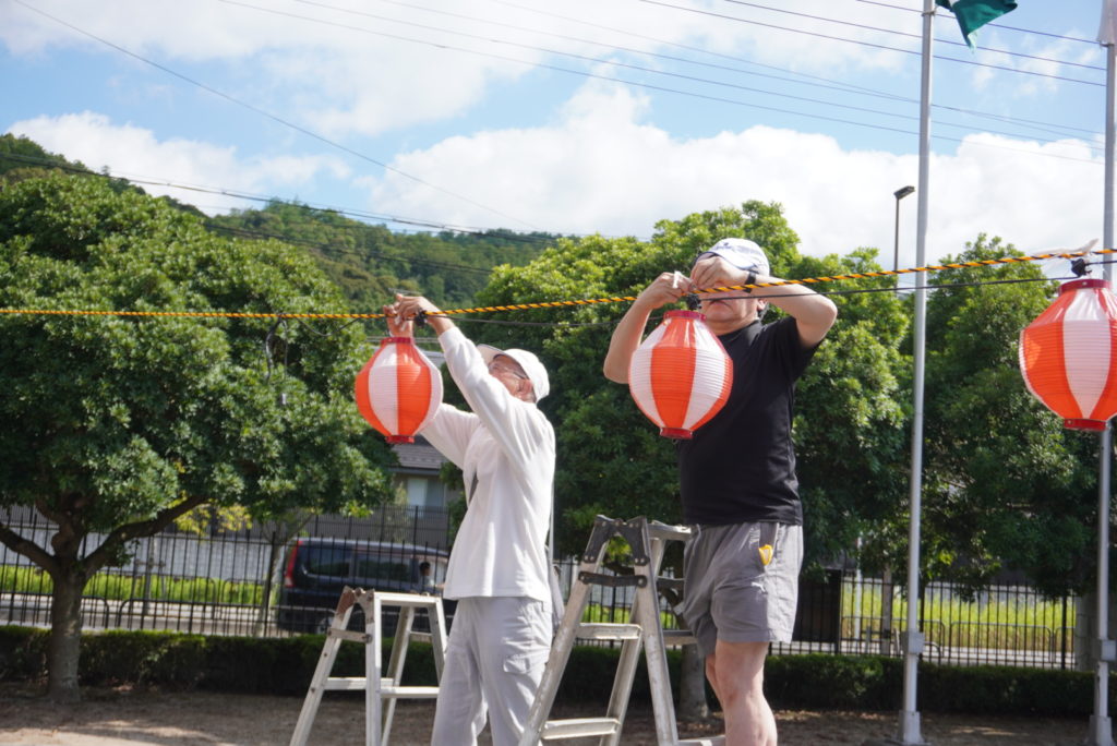 本日開催!木野町盆踊り 投稿者: kinocho2024年8月11日きののまち、木野町自治会 こんにちは!!本日18時から北稜高等学校駐車場にて木野町自治会主催の盆踊りが開催されます。昨日の夕方から、沢山の方々によって準備が進められております。本日も早朝から木野町自治会会員様、組長様、提灯の取り付けなどお手伝いありがとうございました。 早朝からの作業とはいえ炎天下!!脚立に登り電球、提灯一つづつ付ける作業は大変です!! 校門まえにつける提灯をかける竹も本日切ってつけました!!! 皆さん、是非18時からご近所さんに声を掛け合って来てくださいね~!!! いいね:いいね 読み込み中…